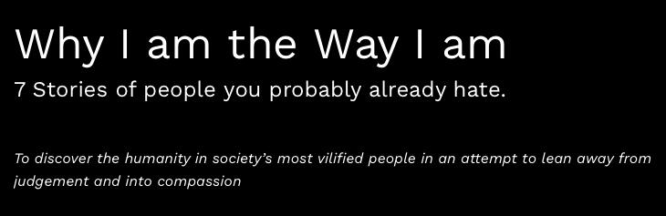 Why I am the Way I am is a 1-woman play written and performed by Erin Elizabeth Burns in response to the hate, judgement, and misunderstanding of society's most villified people.Let's get to know our neighbors, shall we?